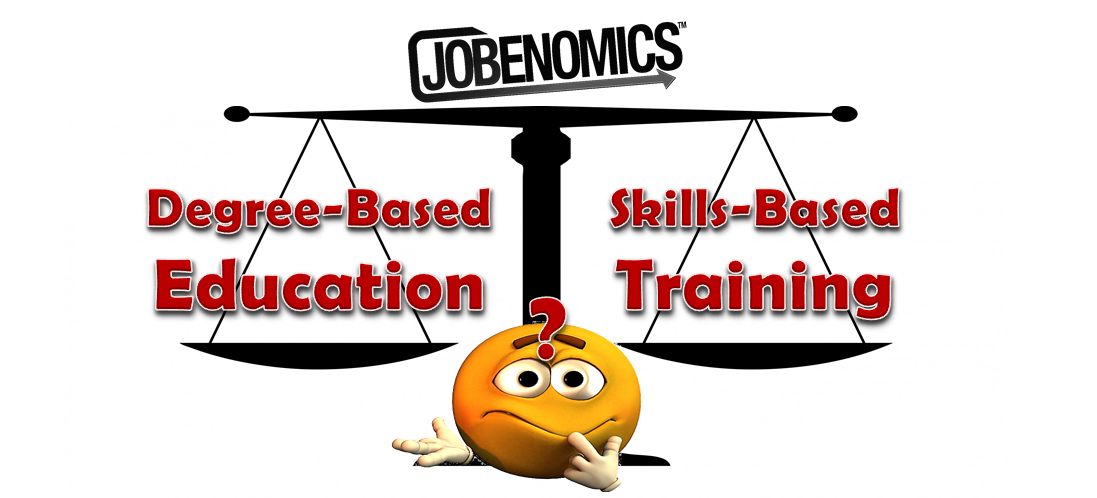 From a Jobenomics perspective, understanding the difference between education and training is fundamental to U.S. labor force development. Education is foundational and generally measured by tenure. Training is specific and measured by what one can do once completed. Educational degree-oriented programs are measured in years and are usually expensive. Training programs are often as short as weeks or months, and are relatively inexpensive. For people seeking careers, degree-oriented programs are usually the best choice. For the underprivileged, unskilled and poorly educated segment of society, certificate-oriented skills-based training provides the most effective way to getting a good job, the first step towards a meaningful career.